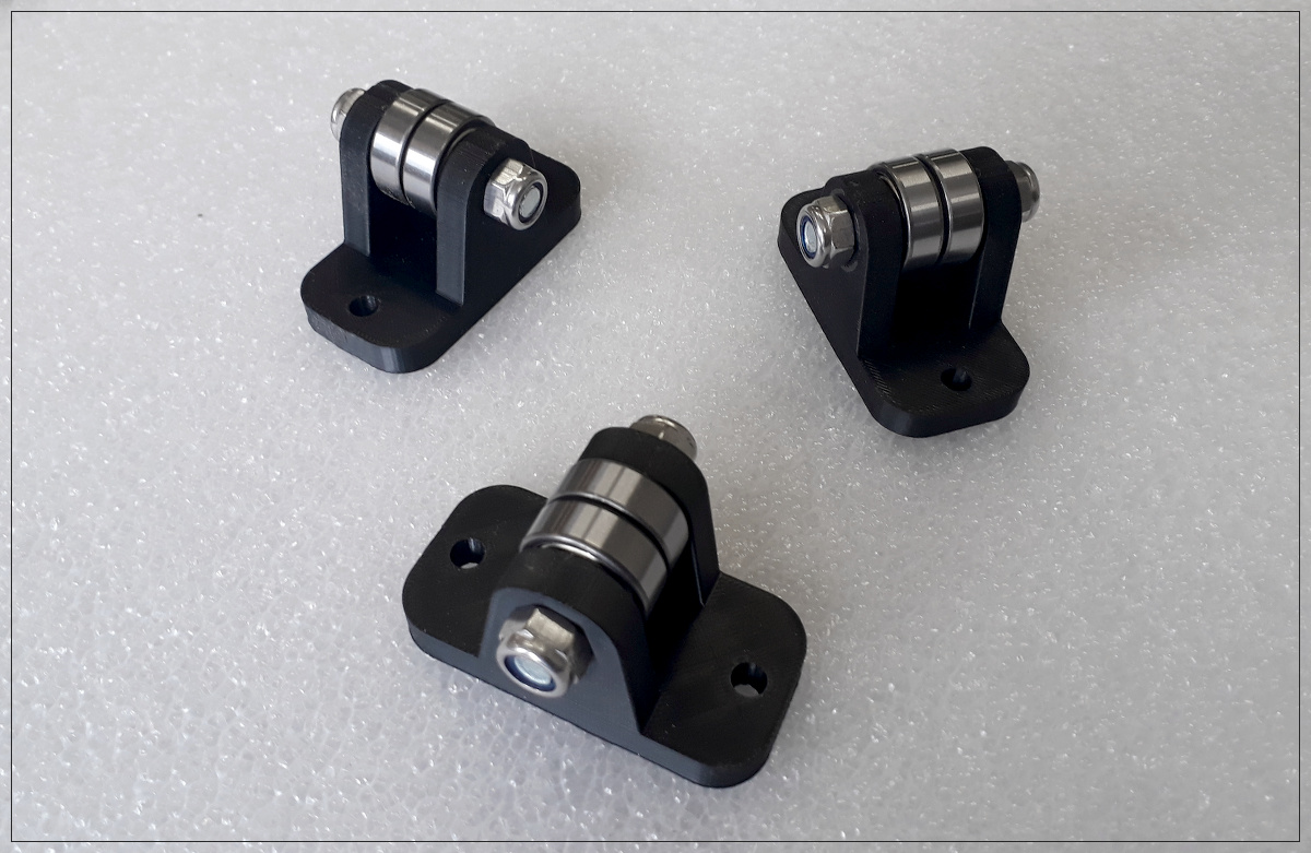Um die geforderte Leichtgängigkeit zu erreichen, kommen Kugellager zum Einsatz, die in speziell konstruierten, 3D gedruckten Lagerblöcken
