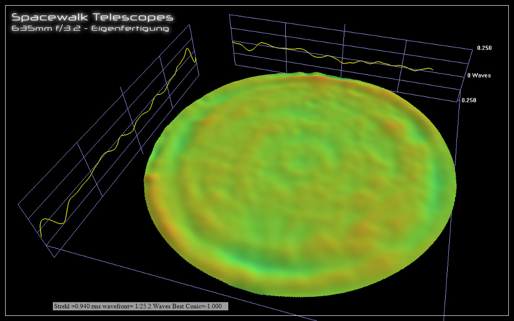 die Form wieder sehr gut geworden. Der Strehlwert liegt bei S=0,95. Es sind außer ein paar wenigen flachen Zonen keine Fehler