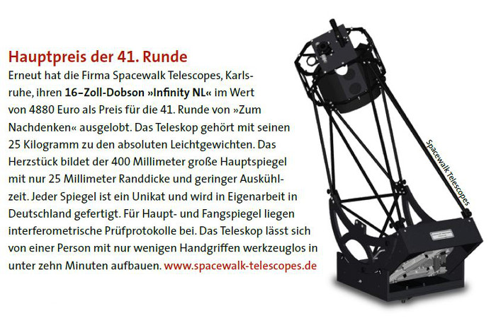 Das 16" Infinity NL ist nicht betroffen. Dieses wunderbar leichte Teleskop kann also auch in 2023 weiterhin fleißig