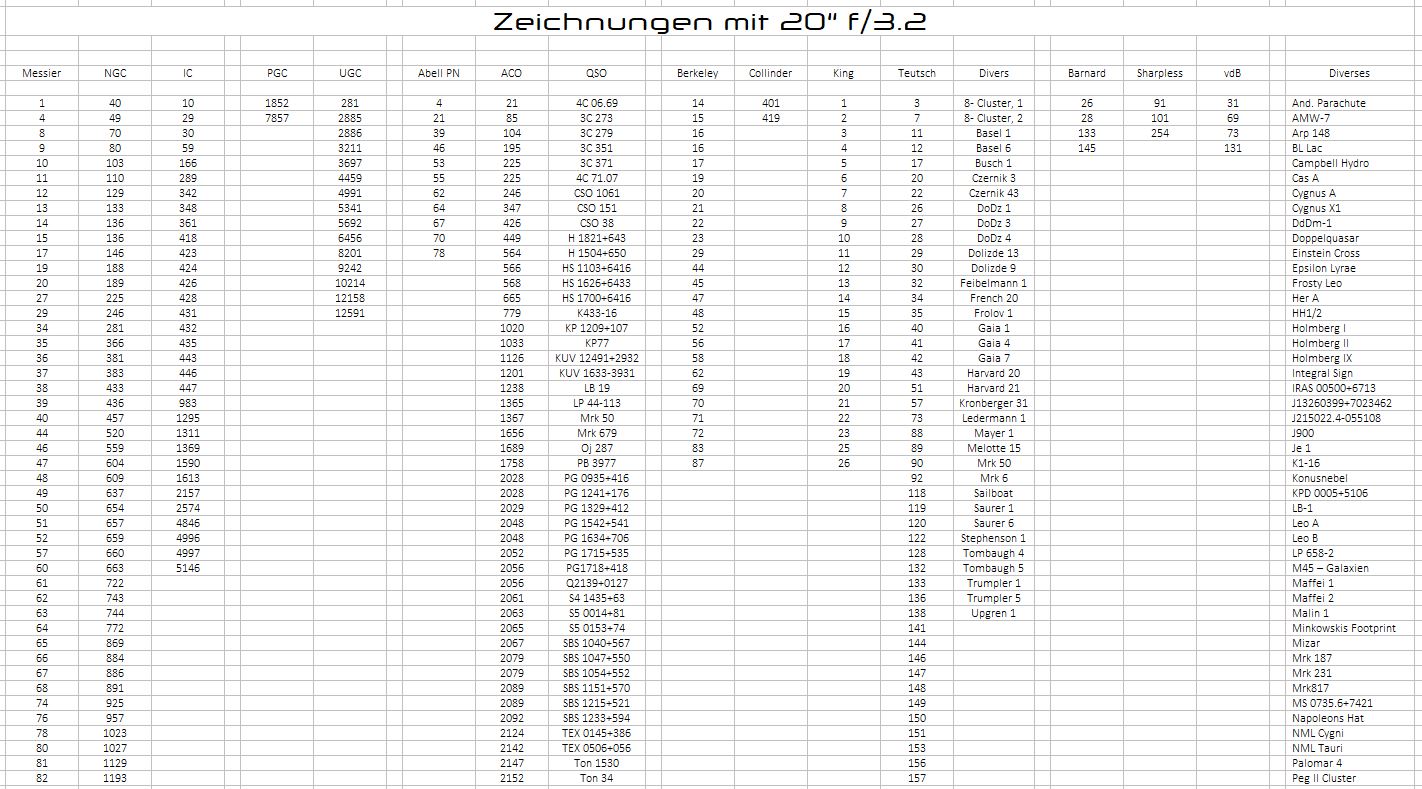 In den letzten Tagen habe ich einiges an Zeit darauf verwendet, meine Unterseite mit den DeepSky- Zeichnungen komplett