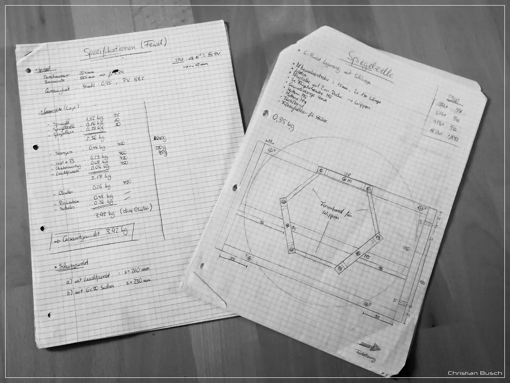 In den letzten Tagen habe ich mich noch einmal an die Konstruktionszeichnung für die Nachführplattform gesetzt und einige neue Segmente