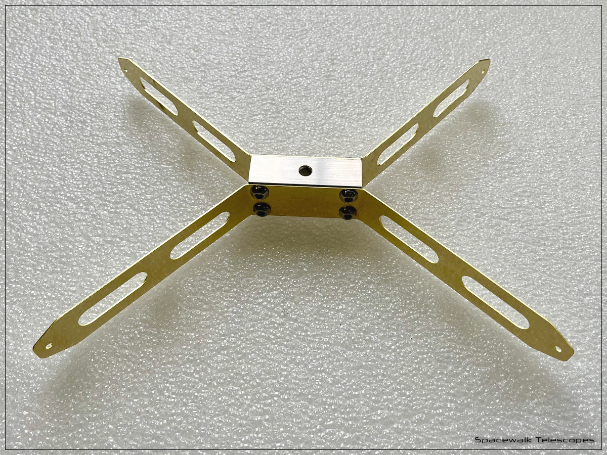 The spider arms are laser-cut from 0.8 mm to 1.0 mm thick brass sheet and have cutouts to reduce weight. Another advantage of such a thin spider